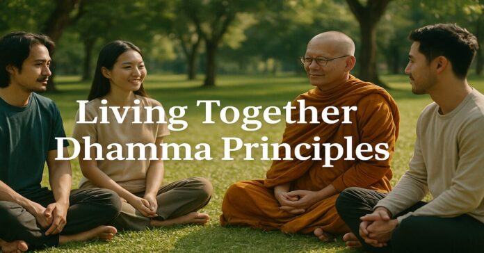 หลักธรรมในการอยู่ร่วมกันคือการฝึกฝนตนเองให้มีเมตตา รักษาศีล พูดจาอ่อนโยน และพร้อมเกื้อกูลกันเสมอ หากทุกคนมีพื้นฐานเหล่านี้ สังคมก็จะเต็มไปด้วยความเข้าใจ ความเอื้อเฟื้อ และความสุขที่แท้จริง